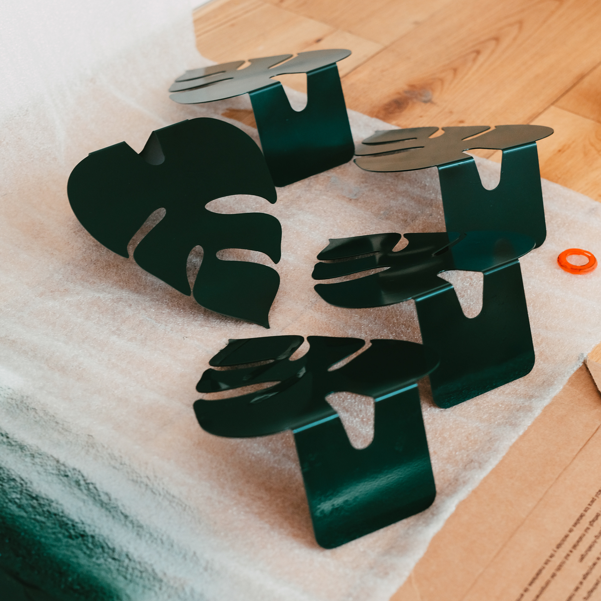 A small, weekend project that was born from plant maintenence and a need to tidy our bookshelves. The monstera bookends was a project of quick ideations and quick decision making, a refreshing way of working. The result, was a playful, fun way to inject some colour and personality to our bookshelves.